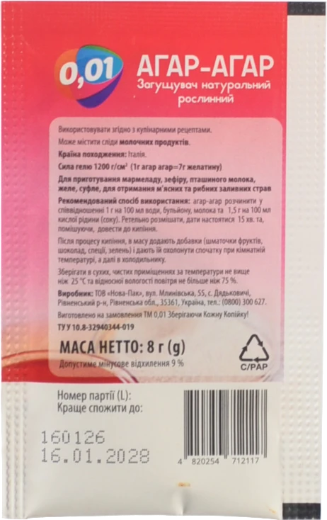 - Агар-агар 0.01 8г