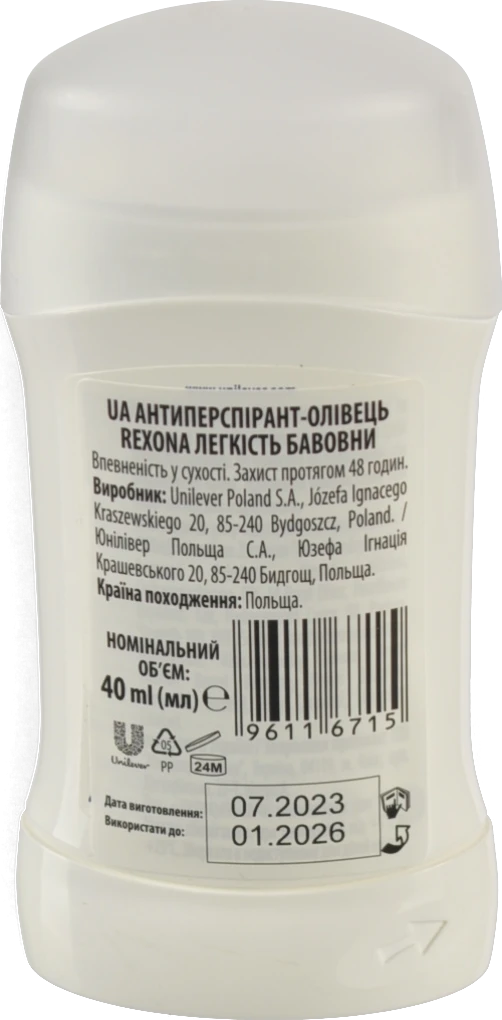 - Антиперспірант Rexona 50мл легкість бавовни стік