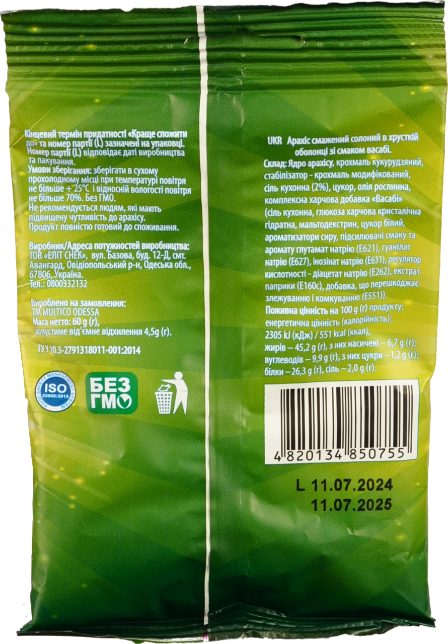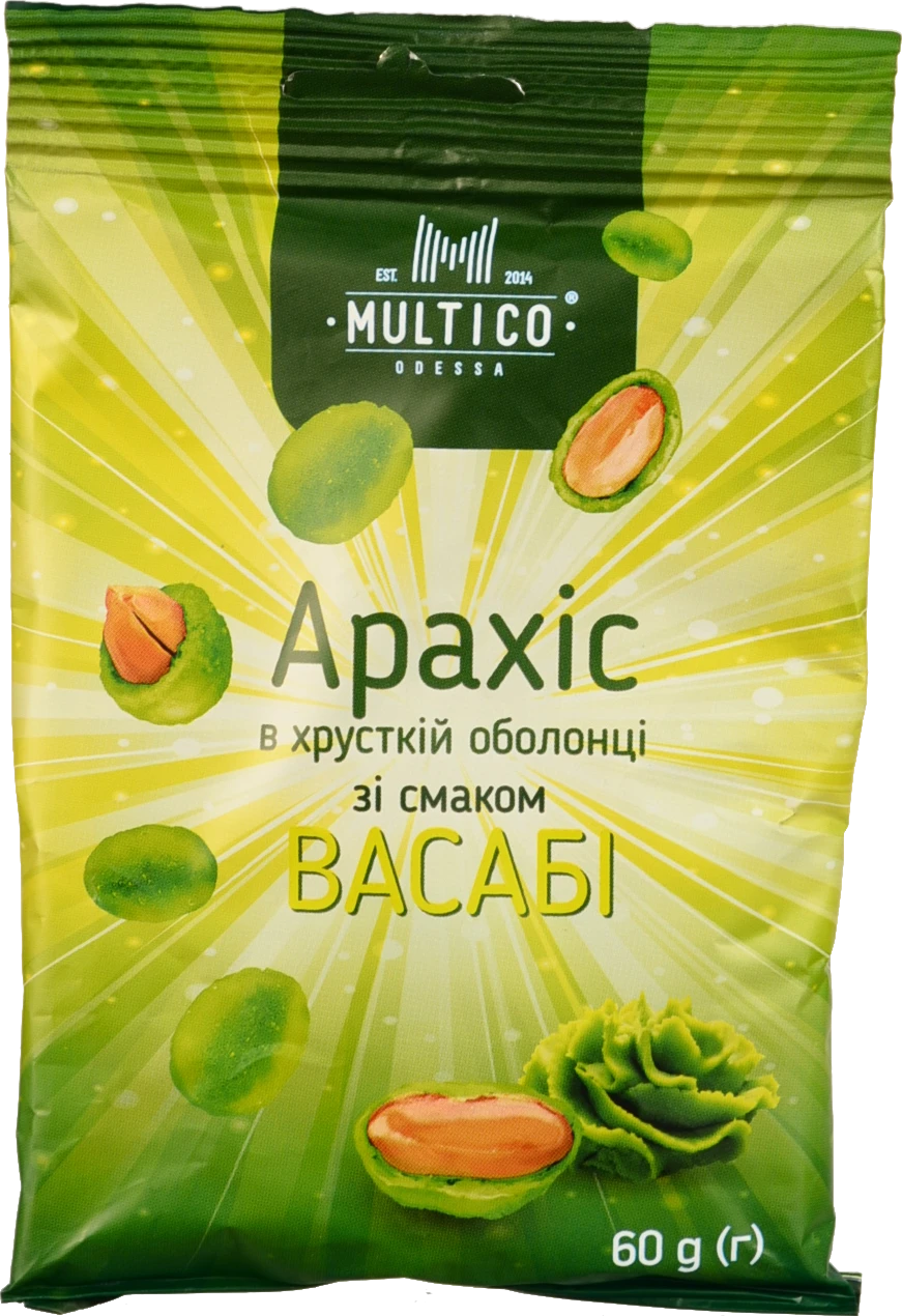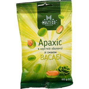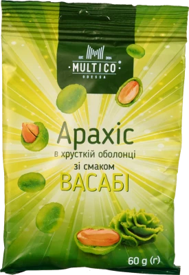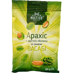 - Арахіс «Multico» смажений у хрусткій оболонці зі смаком васабі, 60 г