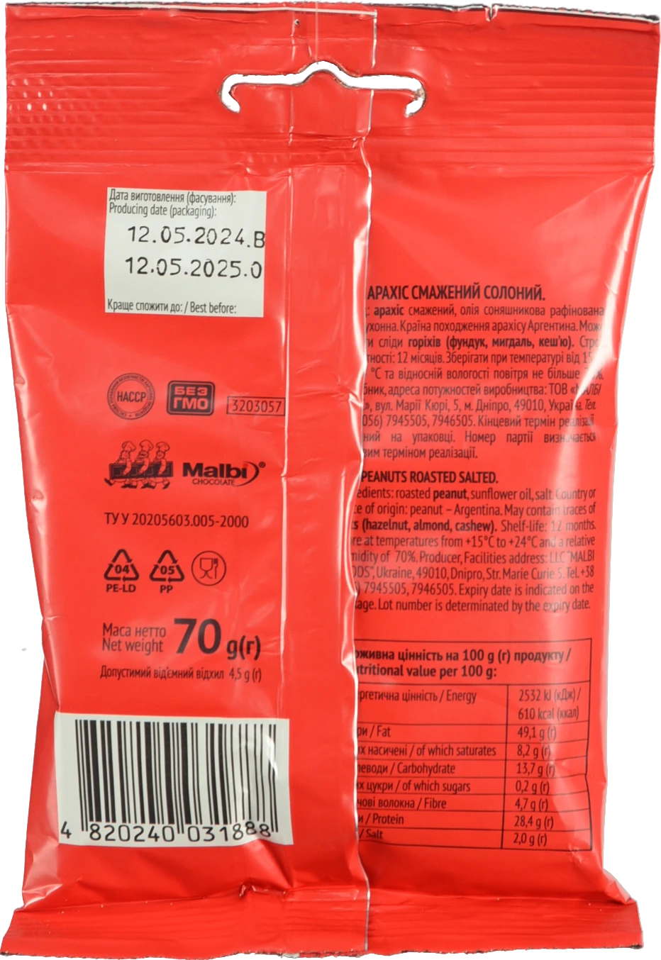 Вид продукції:АРАХІС СМАЖЕНИЙ