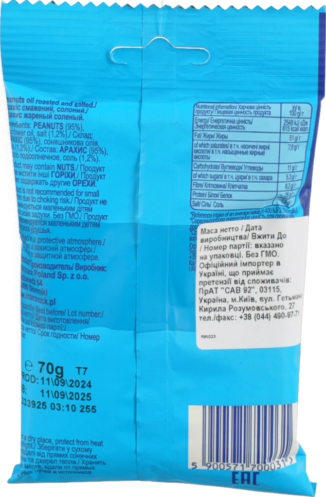 Вид продукції:АРАХІС СМАЖЕНИЙ