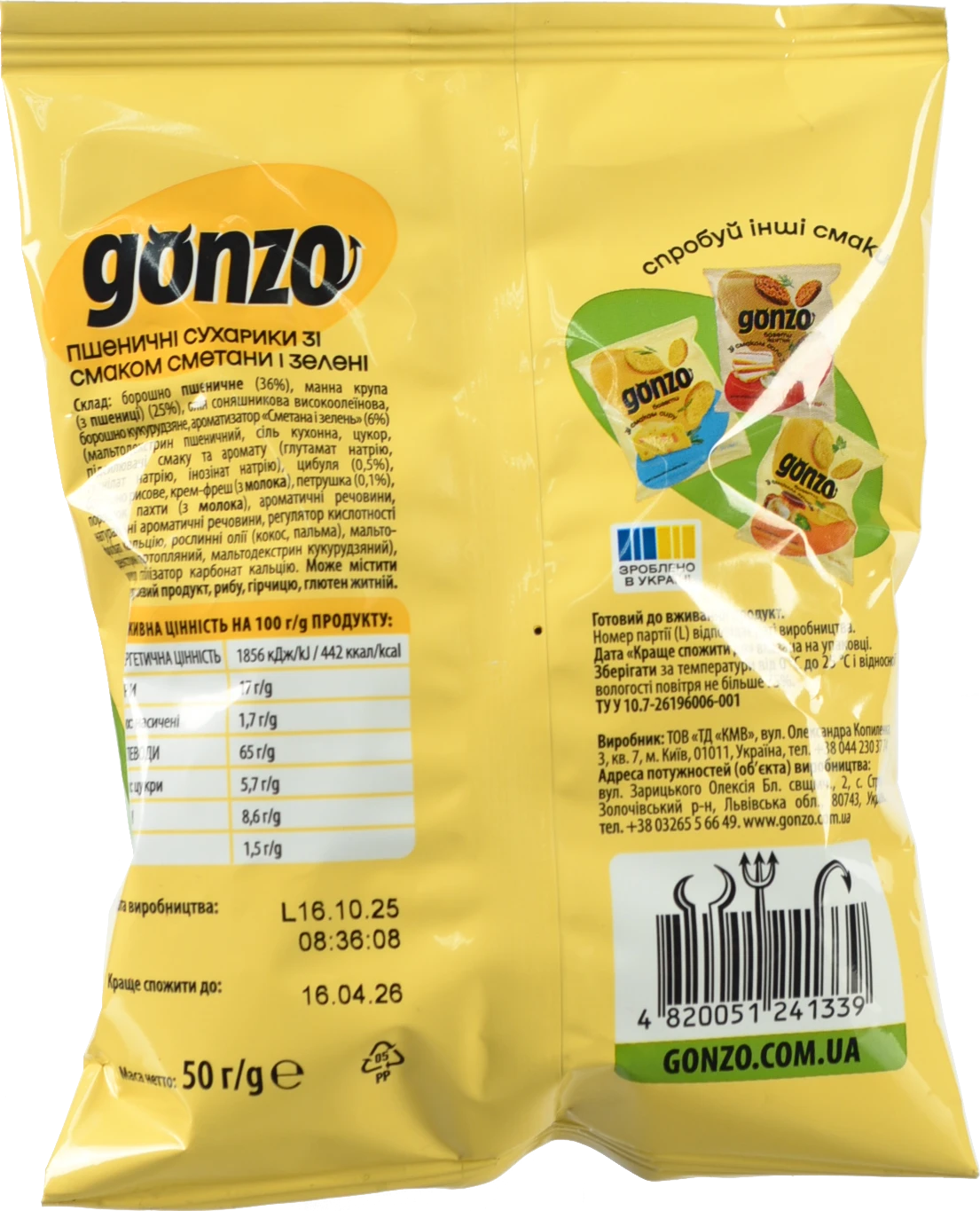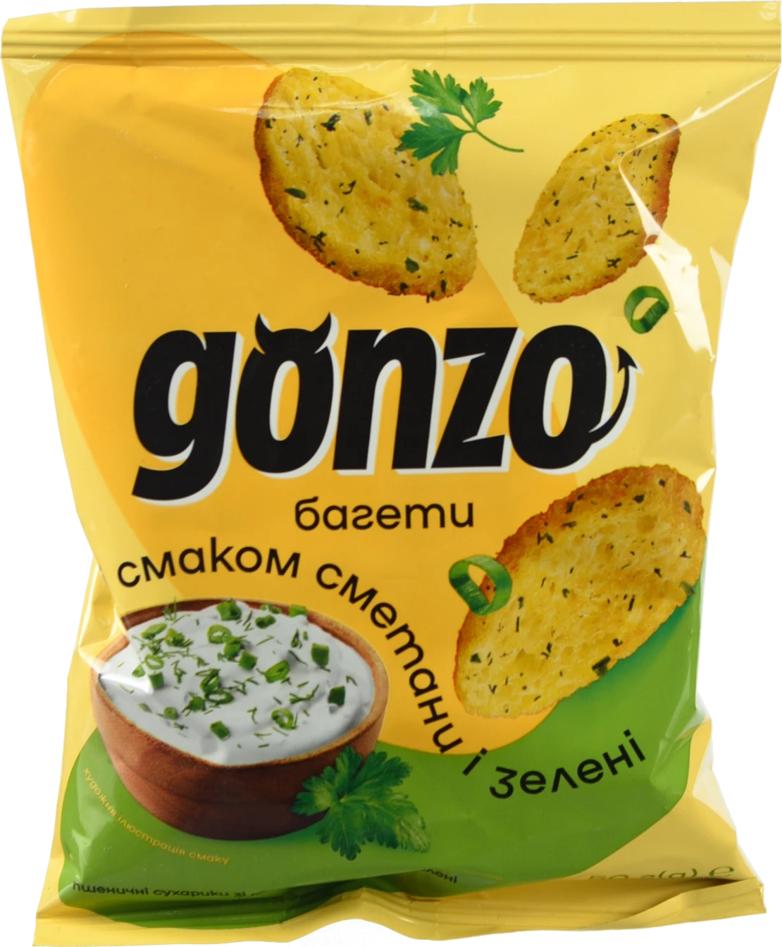 - Сухарики Gonzo 50г сметана зелень