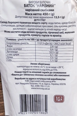 - Батон Нарізний Одеський хлібозавод №4 м/у 450г