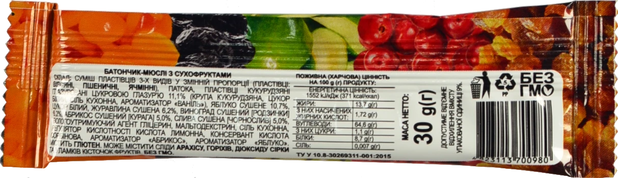 Вид продукції:БАТОНЧИК-МЮСЛІ