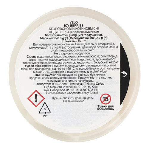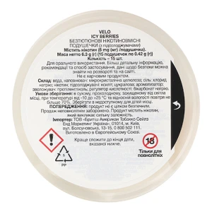 - Безтютюнові подушечки Velo Icy Berries м'який нікотиновмісні