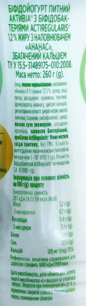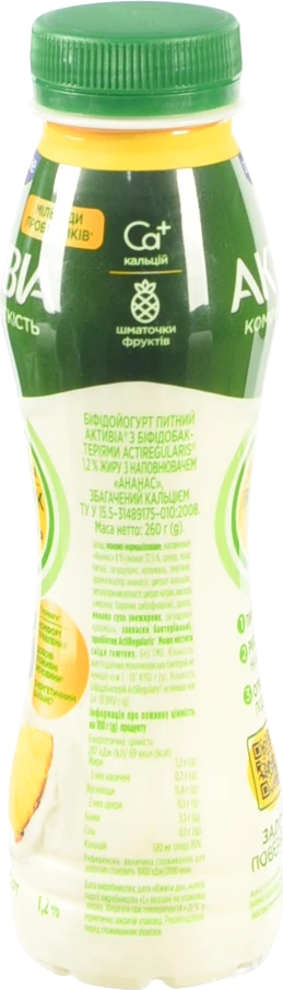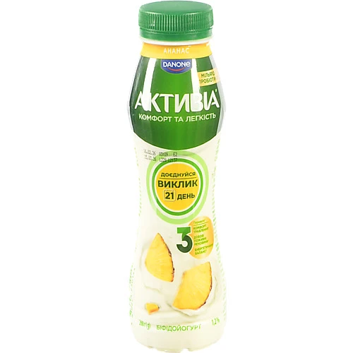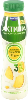 - Біфідойогурт Активіа 260г 1.2 ананас пет
