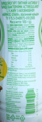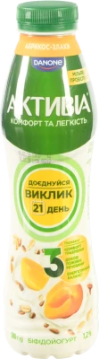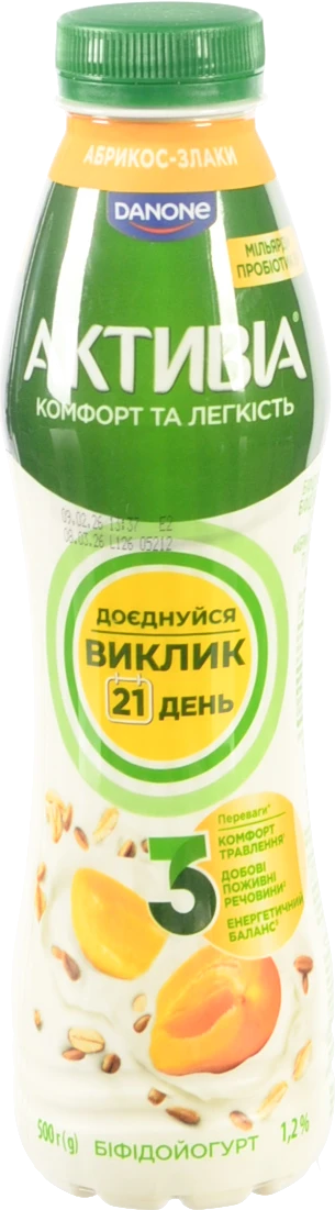 - Біфідойогурт Активіа 500г 1.2 абрикос злаки пет