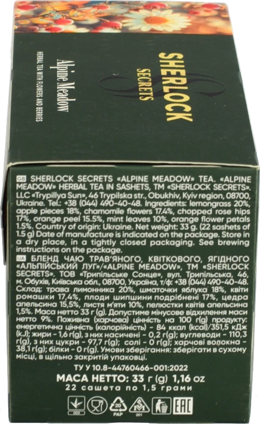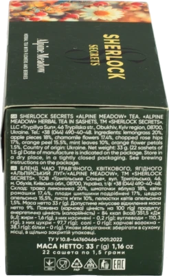 - Чай Sherlock Secrets "Альпійський луг" 22 пакетики по 1.5г