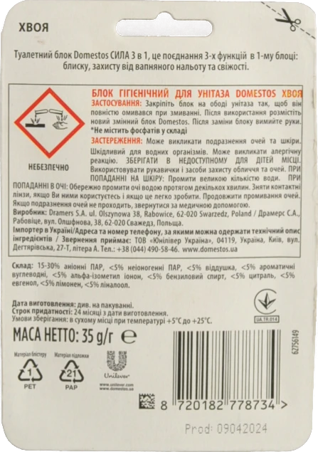 - Освіжувач д.унітазу Domestos 35г хвоя