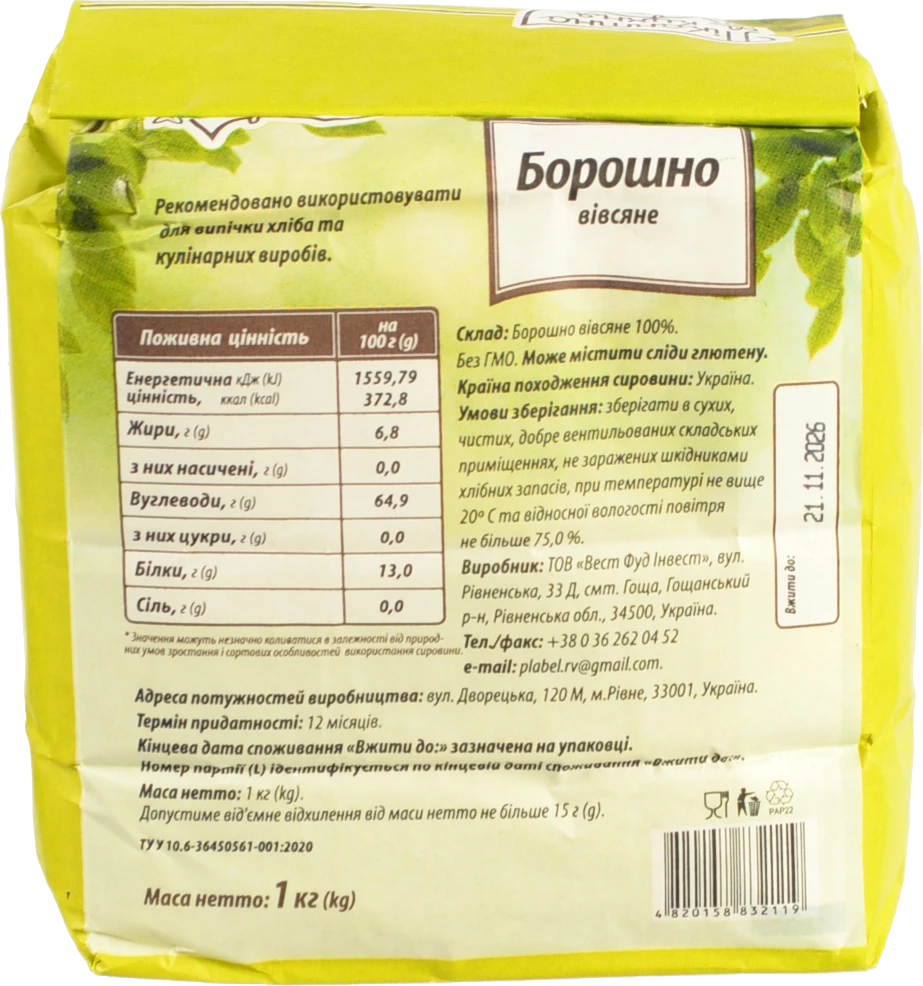 - Борошно Пікантна кухня 1кг вівсяне
