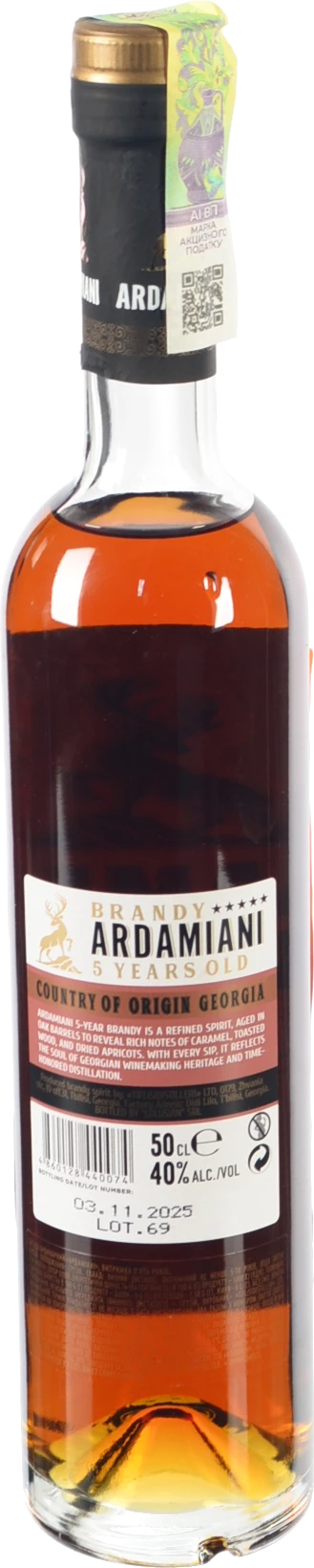 - Бренді орд 0.5л витр 5 років ТМ Ardamiani 12