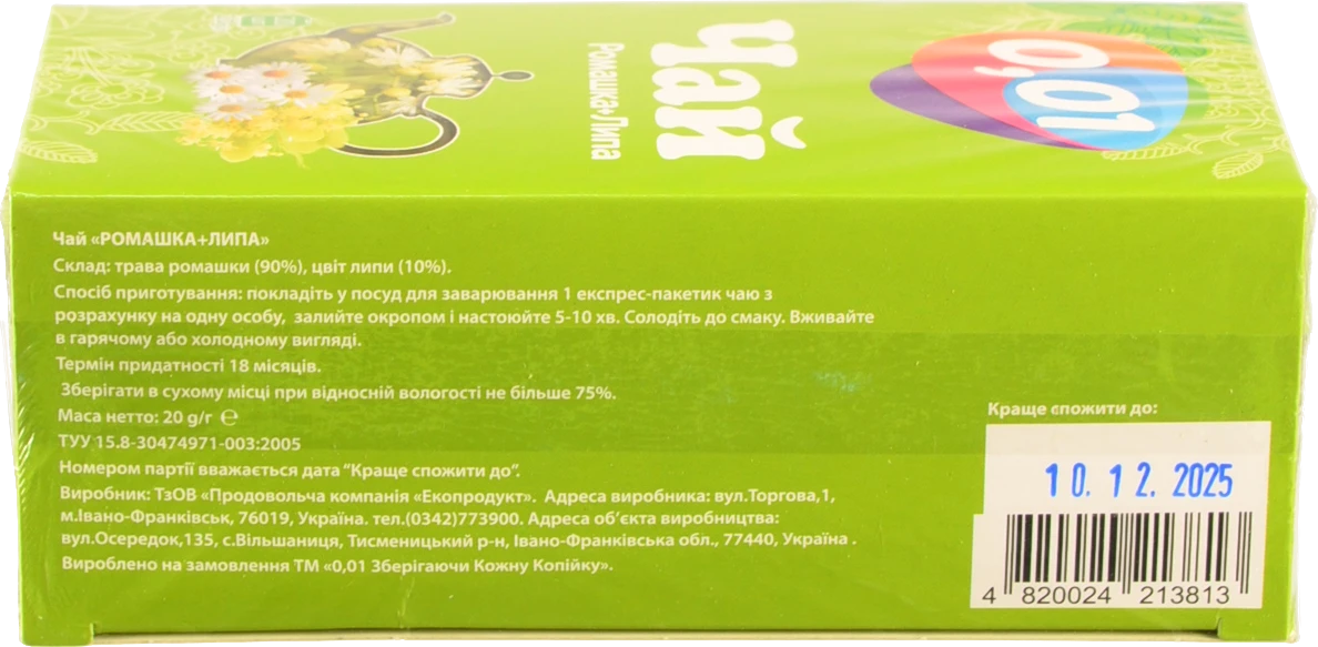 Чай 0.01 20п липа ромашка