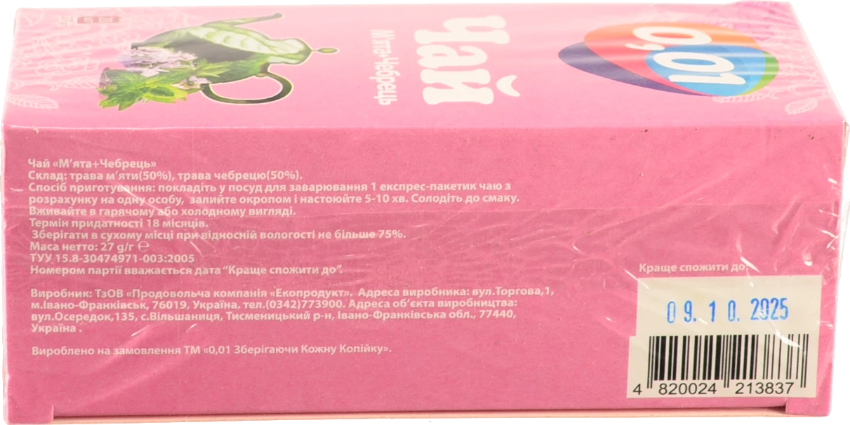 - Чай 0.01 20п м'ята чебрець