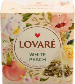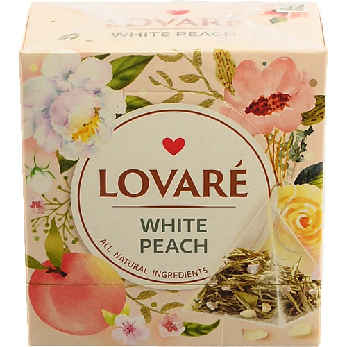 - Чай білий китайський листовий байховий з пелюстками квітів та ароматом персика White Peach Lovare к/у 15х2г
