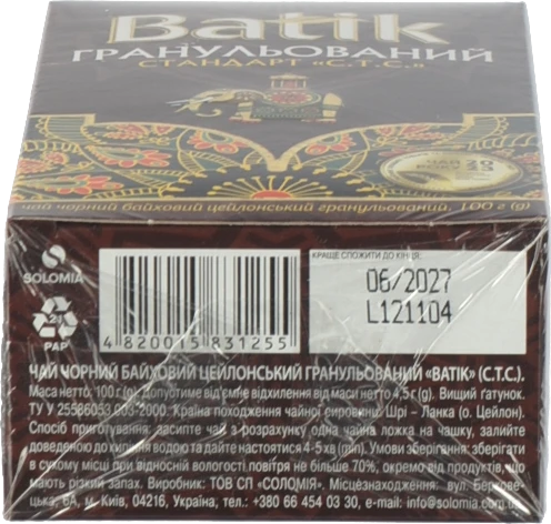 - Чай чорний байховий цейлонський гранульований Batik к/у 100г