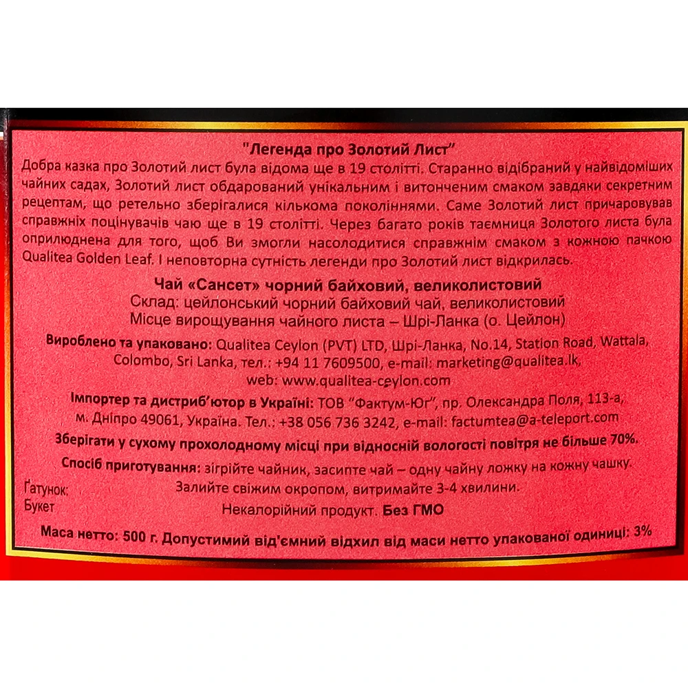 - Чай чорний крупнолистовий Sunset Qualitea п/б 500г