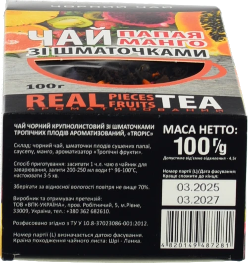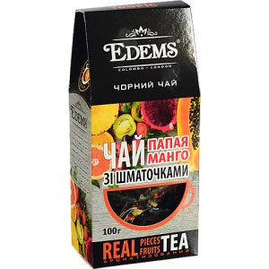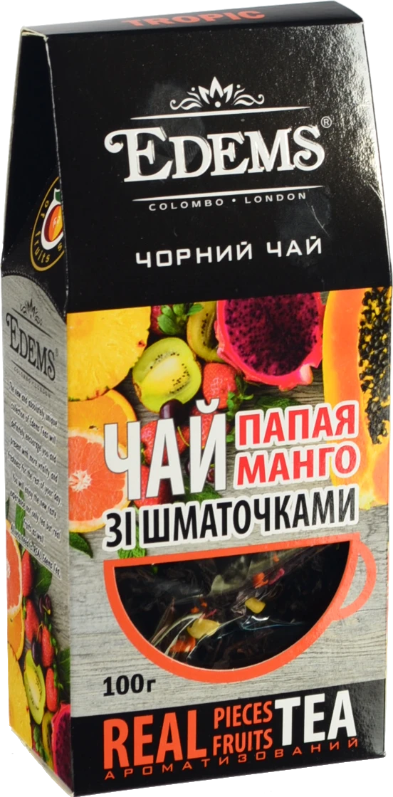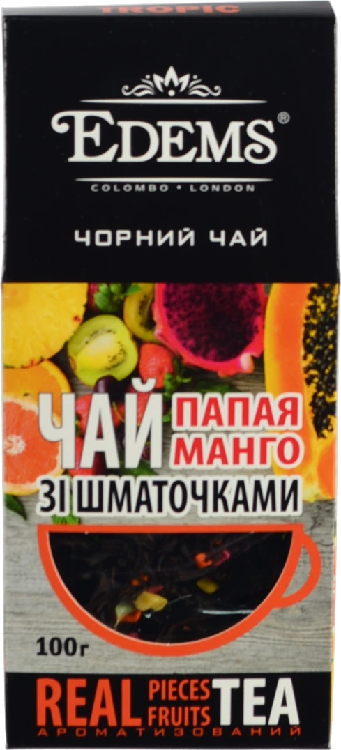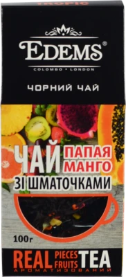 - Чай чорний крупнолистовий зі шматочками тропічних плодів ароматизований Tropic Edems к/у 100г