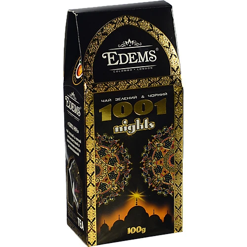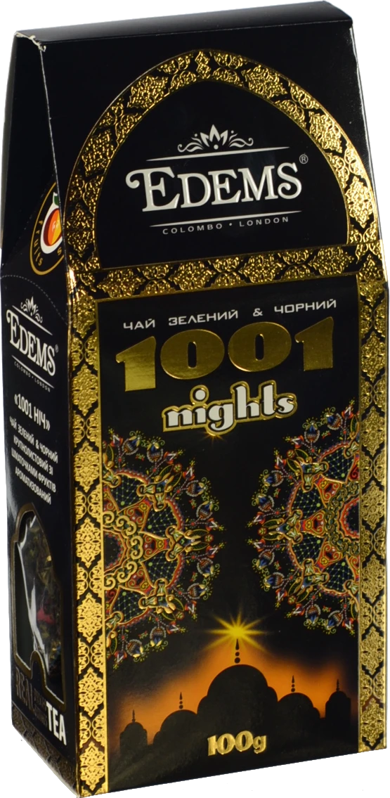 - Чай чорний&зелений крупнолистовий зі шматочками папаї та манго ароматизований 1001 Nights Edems к/у 100г