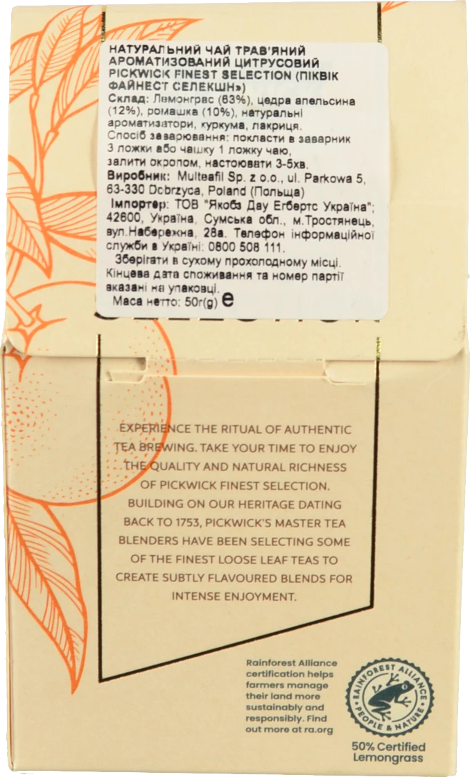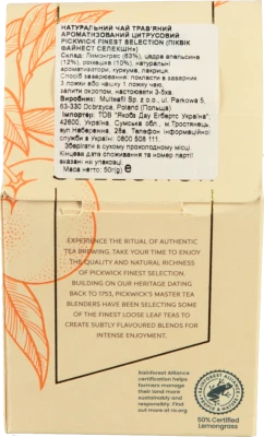 - Чай трав'яний ароматизований цитрусовий Camomile&Lemongrass Finest Selection Pickwick к/у 50г