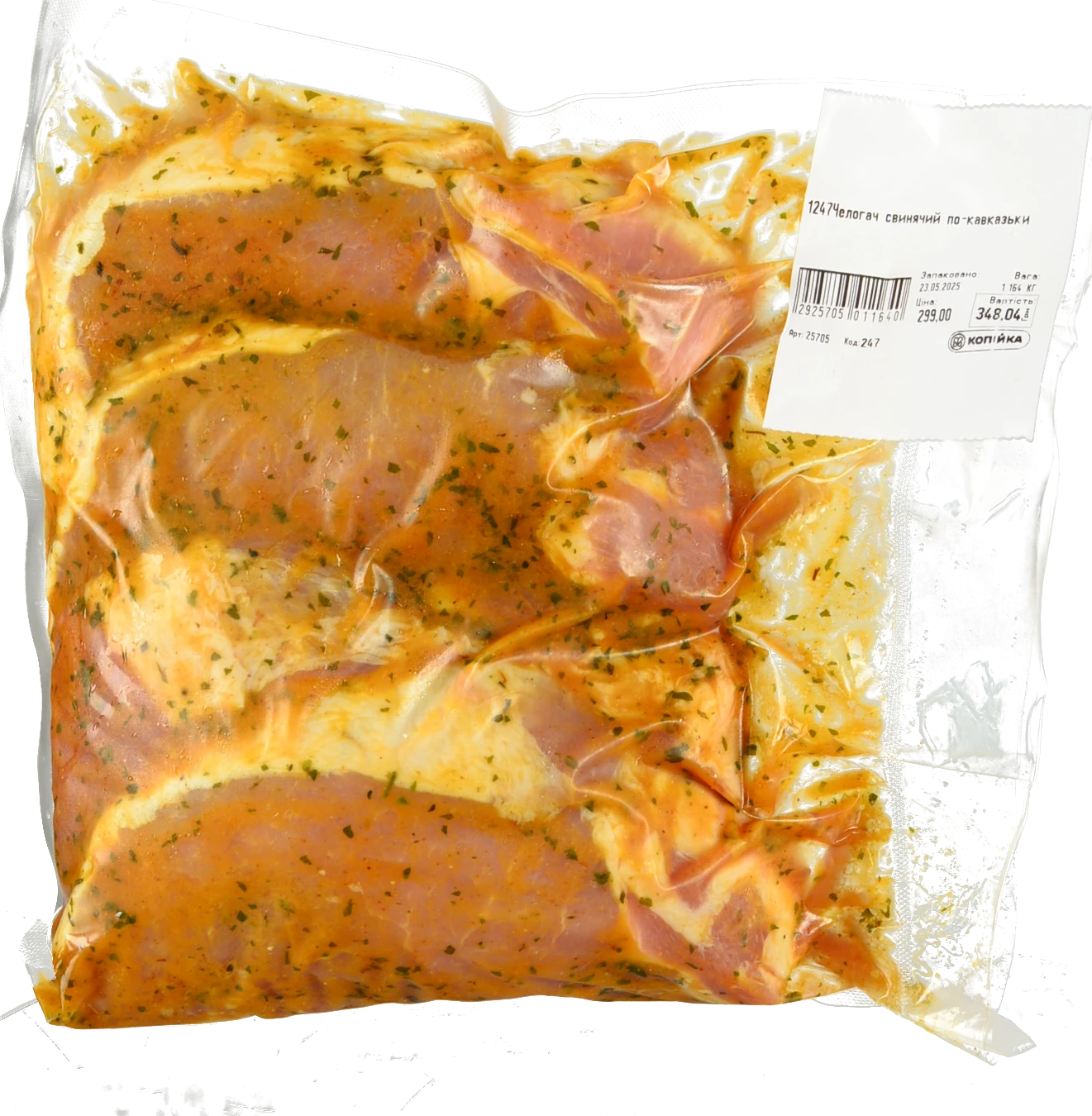 Добавки:Спеції (цибуля ріпчаста свіжа, перець чорний мелений, паприка, коріандр, лавровий лист, часник сушений, суміш кавказьких прянощів)