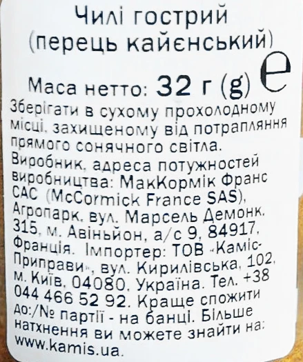 - Чилі гострий Перець каєнський Kamis с/б 32г