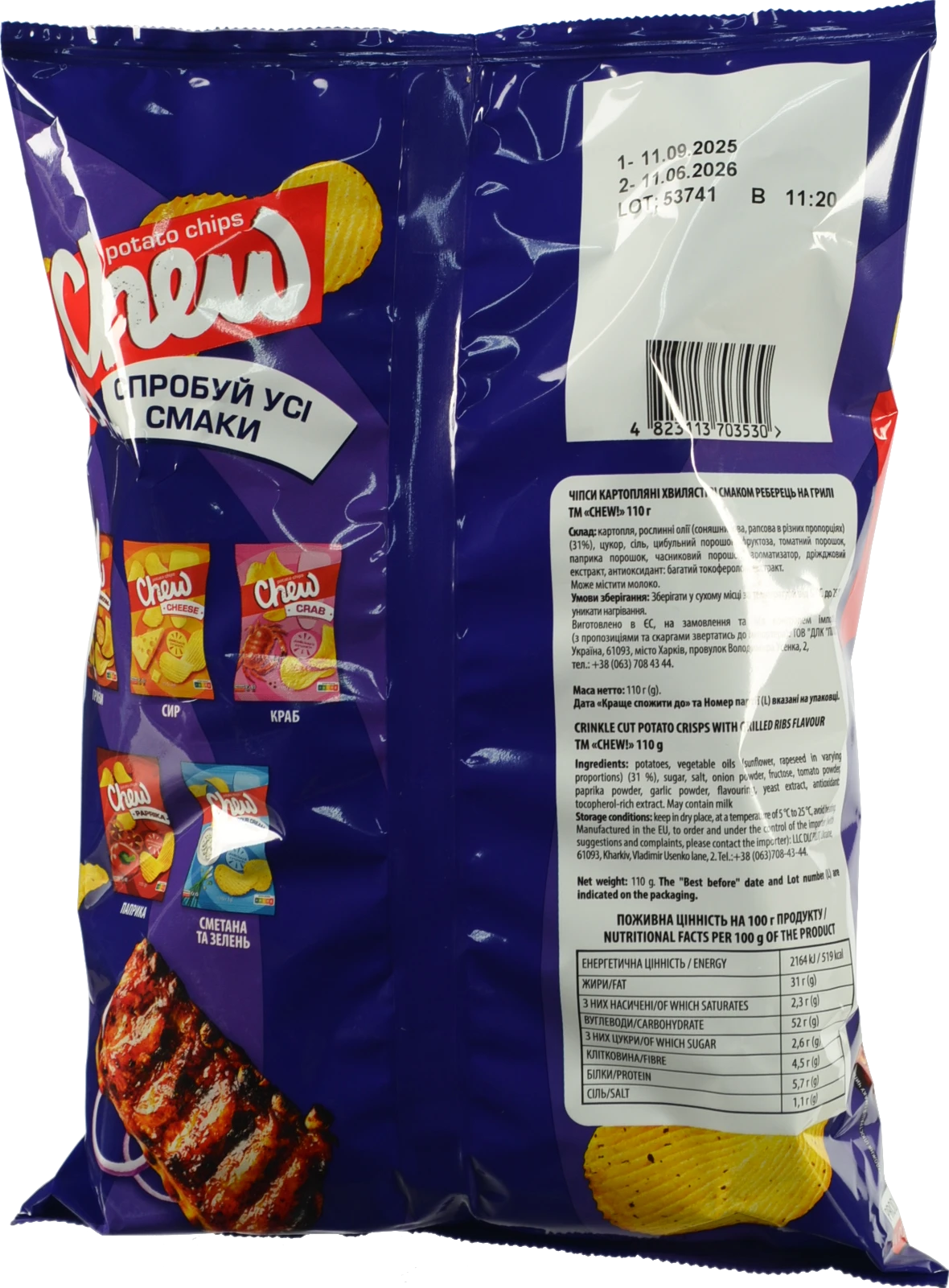 Чіпси CHEW 110г зі смаком Реберця гриль хвилясті