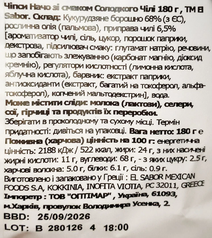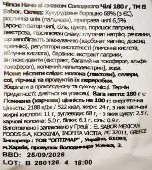 Вид продукції:ЧІПСИ НАЧОС