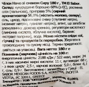 Чіпси EL Sabor 180г начос сир