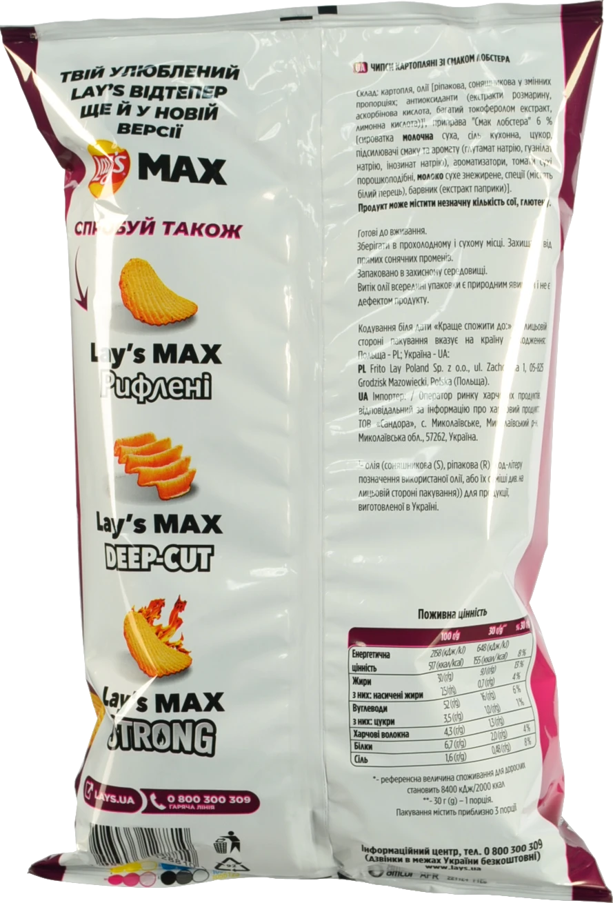 Чипси картопляні Лобстер Рифлені Max Lay's м/у 95г