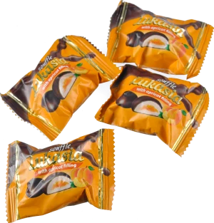 - Цукерки глазуровані кондитерською глазур'ю зі збивним корпусом Лукася з абрикосовим наповнювачем Lukas кг
