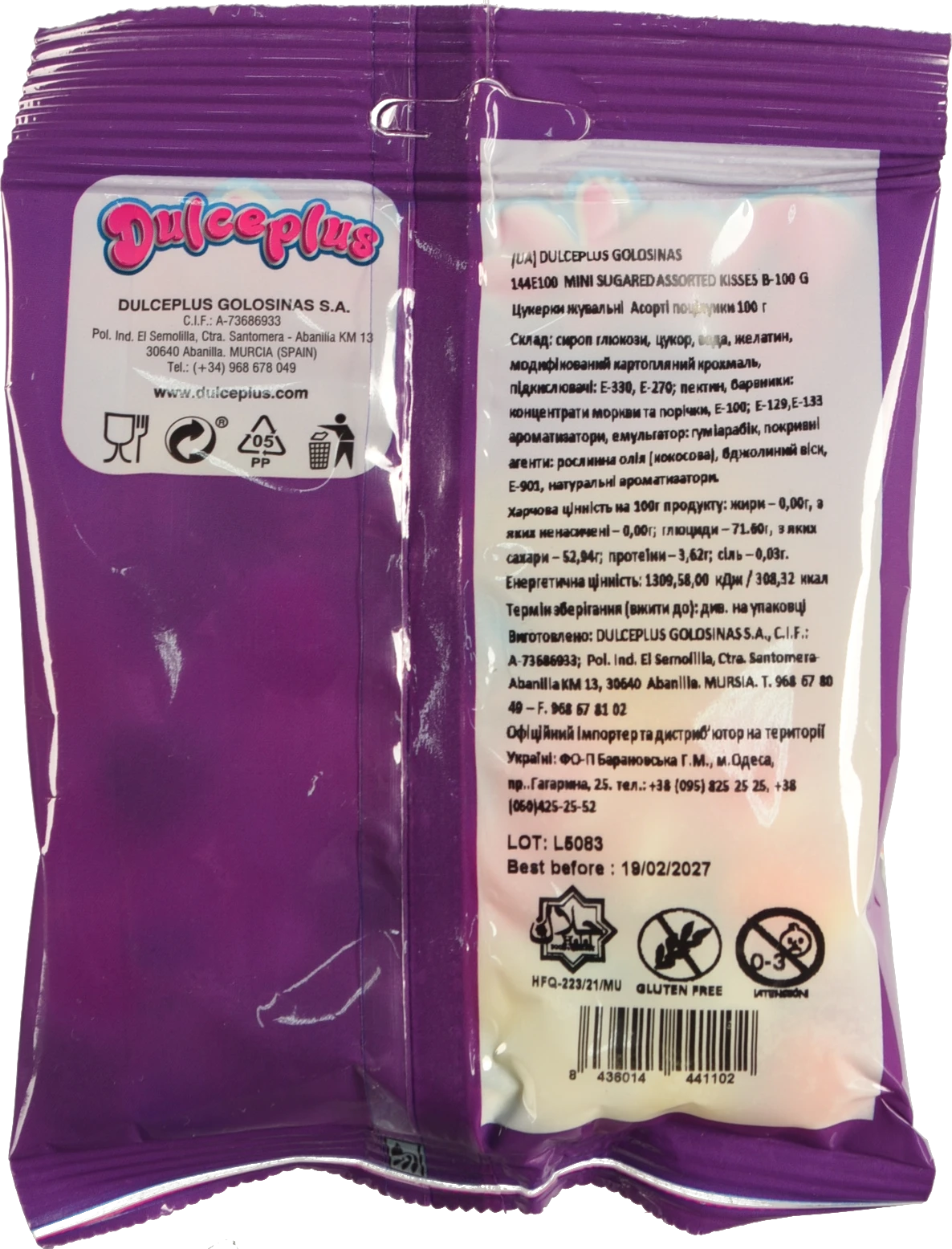 - Цукерки жувальні Kisses Dulceplus м/у 100г