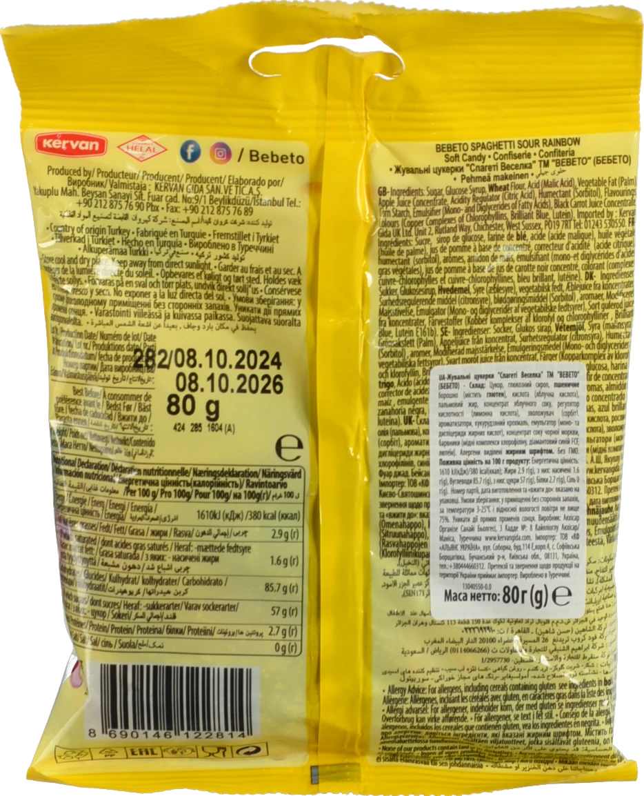 - Цукерки жувальні Sour Rainbow Spaghetti Bebeto м/у 80г
