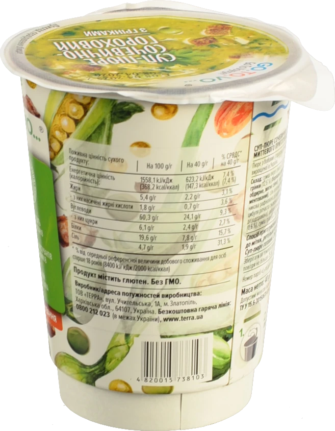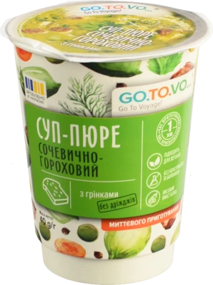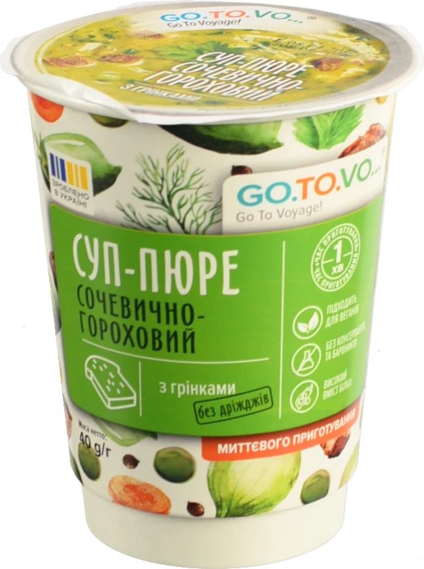 - Суп-пюре Go.To.Vo 40г сочевично-гороховий з грінками