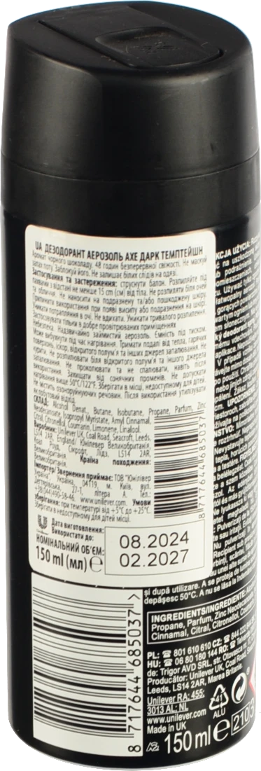 - Дезодорант чоловічий Dark Temptation Axe 150мл