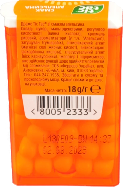 - Драже Смак Апельсина Tic Tac п/у 18г