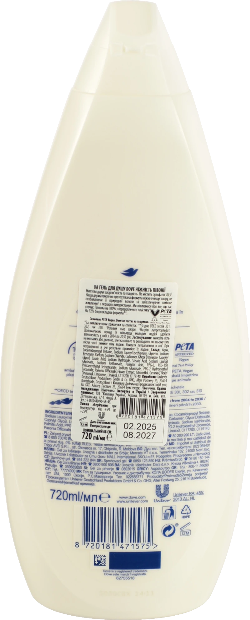 - Гель для душу Dove 720мл ніжність півонії