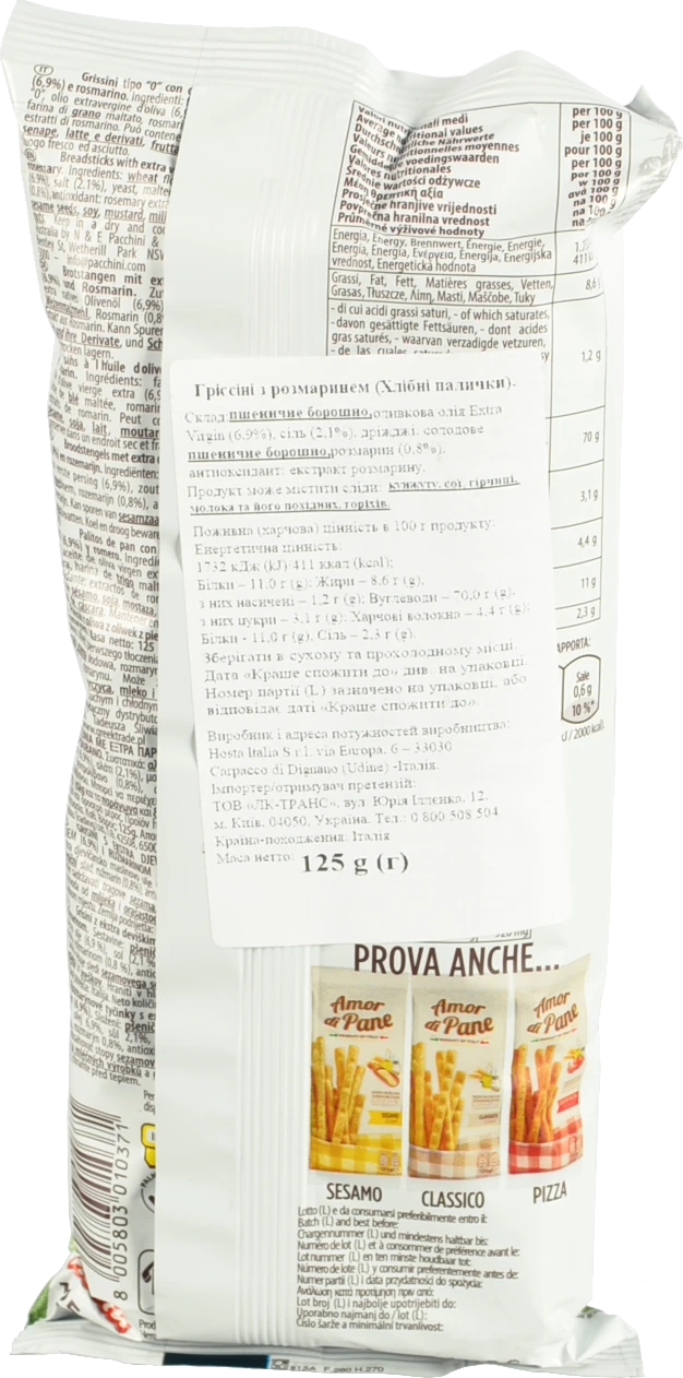 Вид продукції:ГРІССІНІ ХЛІБНІ ПАЛИЧКИ