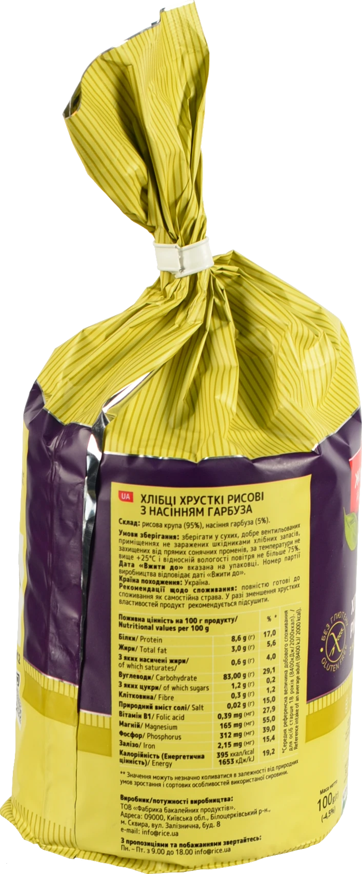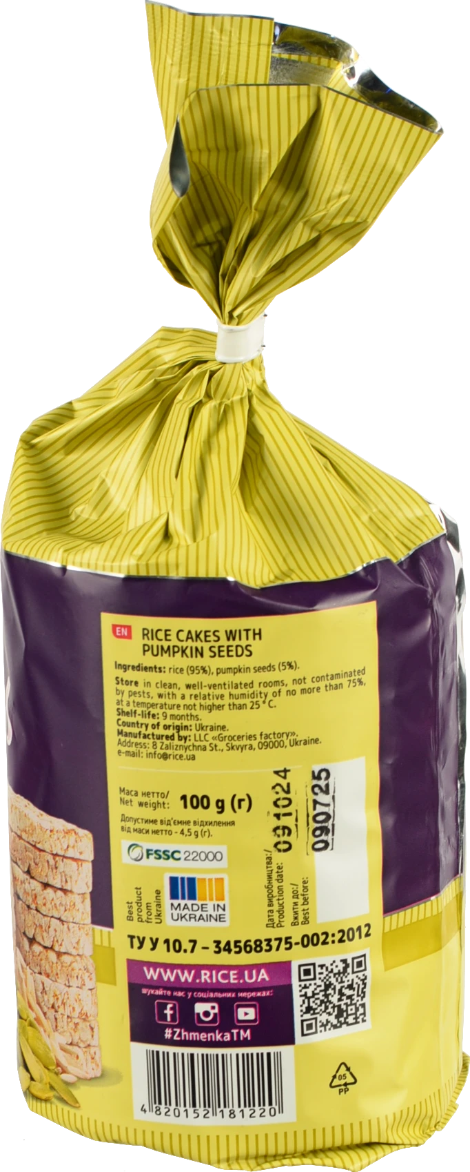- Хлібці ТМ "Жменька" рисові з насінням гарбуза, 100 г