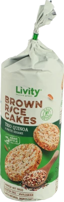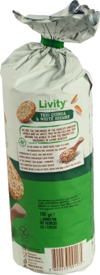 - Хрусткі та смачні цільнозернові рисові хлібці Livity / B.Yond Тріо кіноа і білий кунжут, 100 г