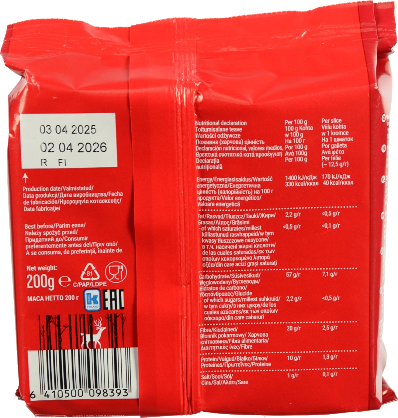- Хлібці Finn Crisp Hi-Fibre житні з висівками, 200 г