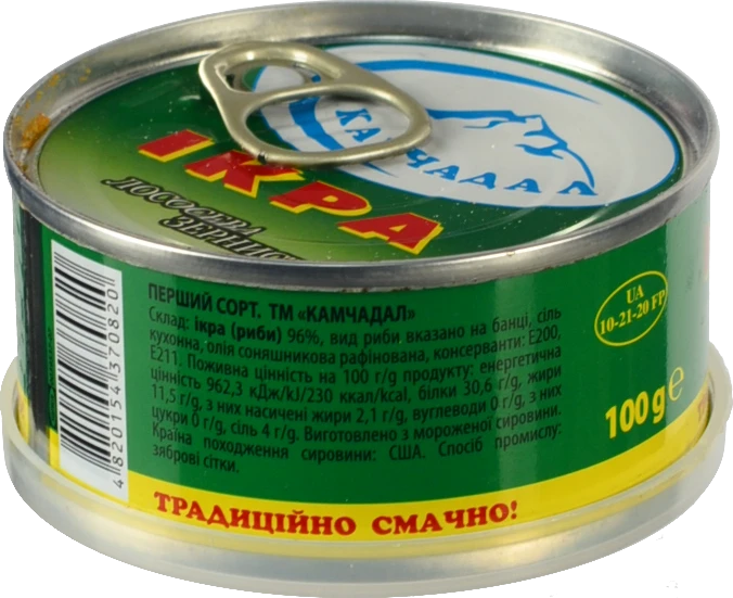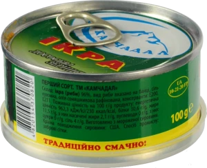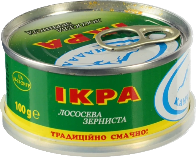- Ікра лососева зерниста солена Камчадал з/б 100г