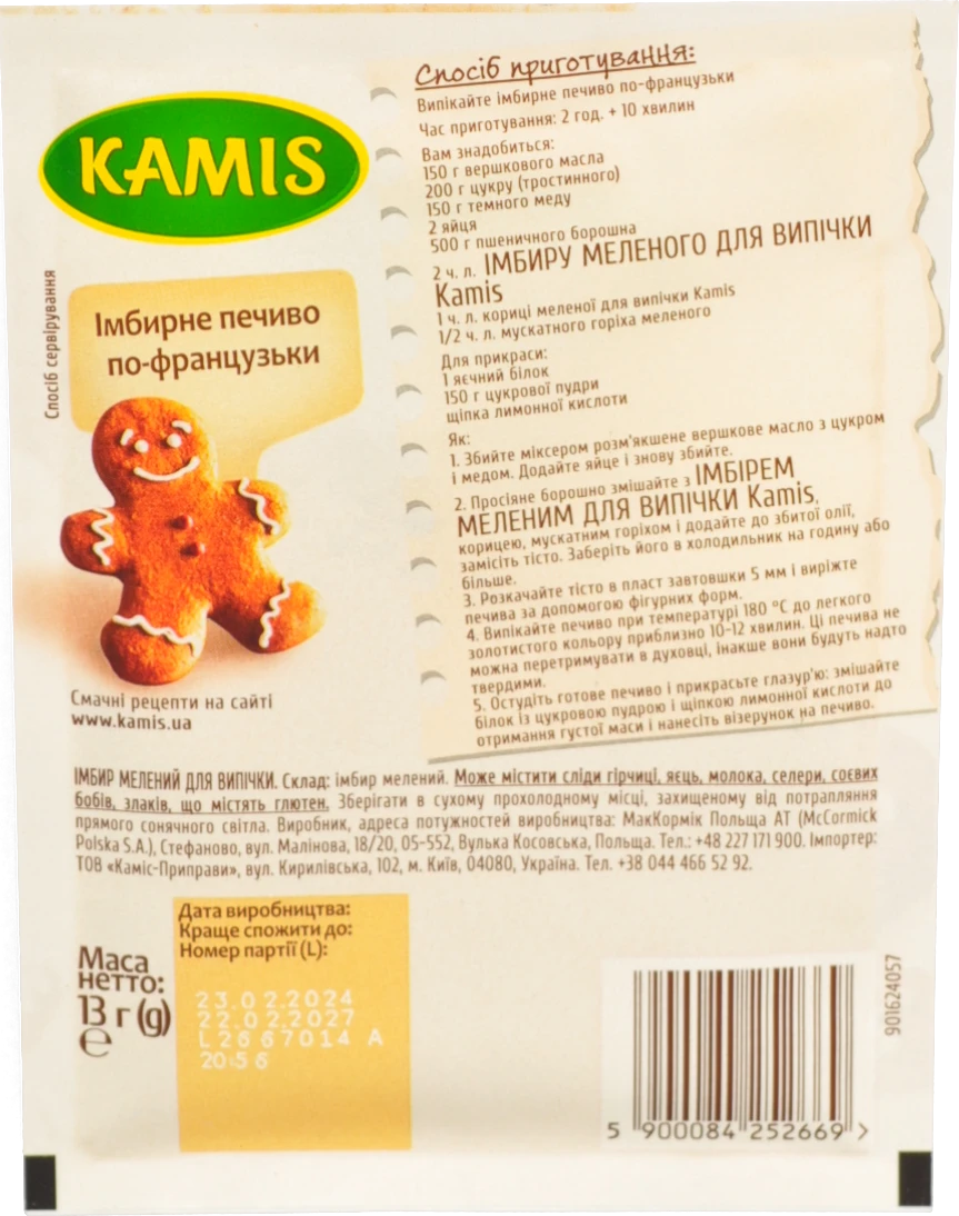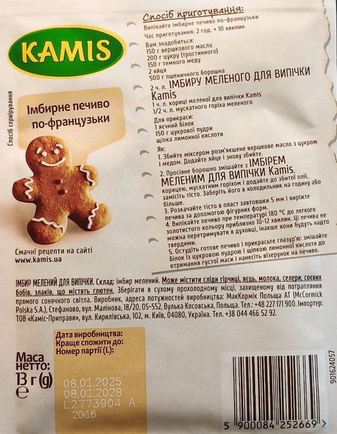 - Імбир мелений для випічки Kamis м/у 13г