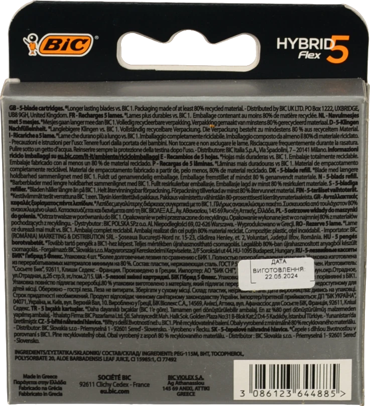Змінний картридж BIC flex 5 hybrid 4шт для гоління