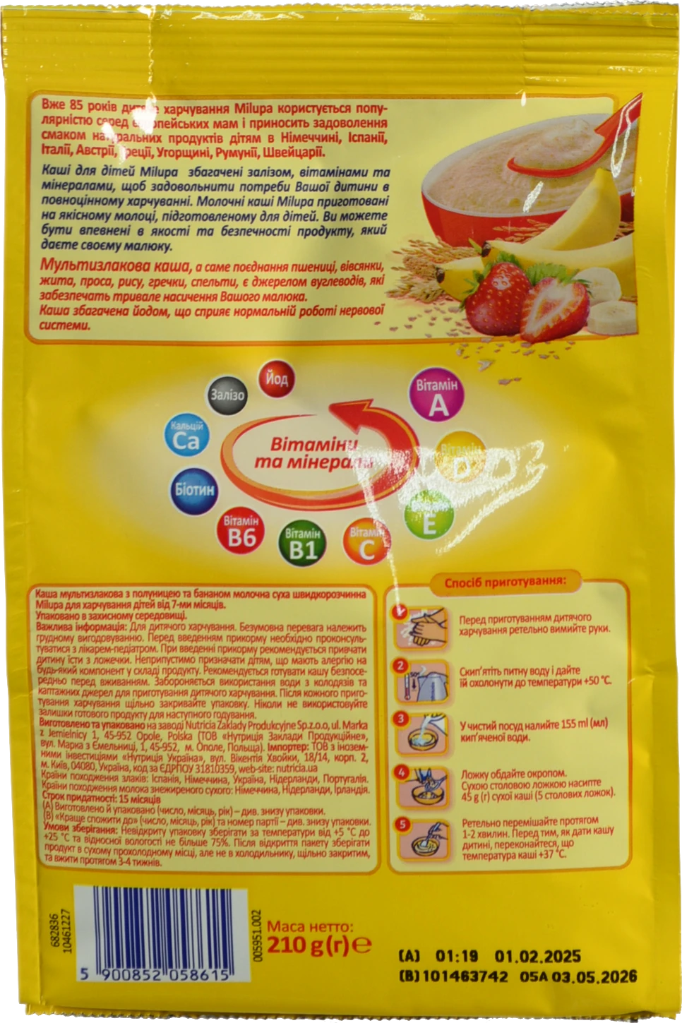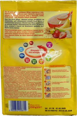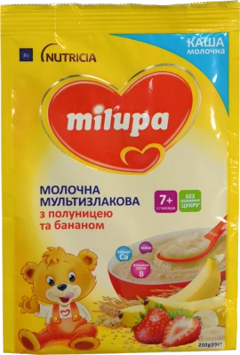 - Каша Milupa 210г молочна мультизлакова полуниця банан 7м+