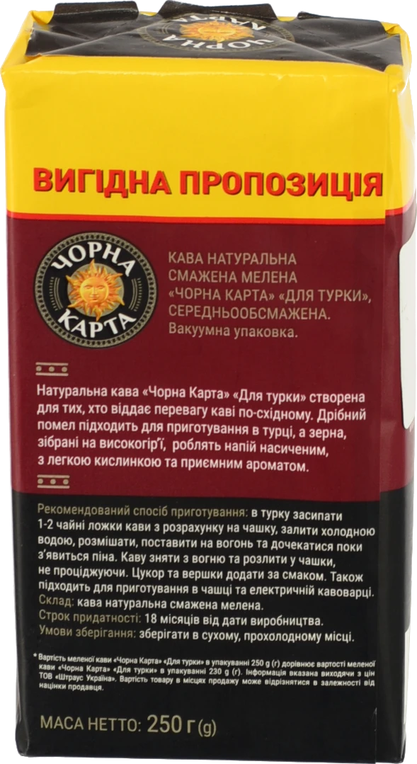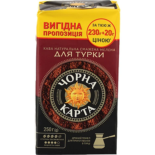 - Кава натуральна смажена мелена для турки Чорна карта в/у 230г