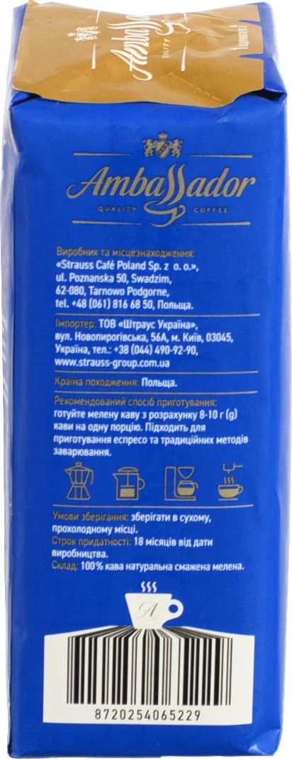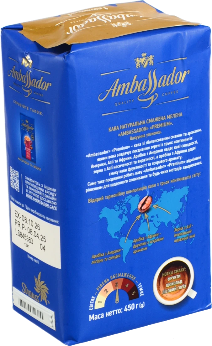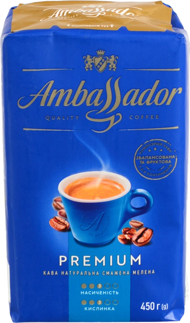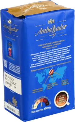 - Кава натуральна смажена мелена Premium Ambassador в/у 450г