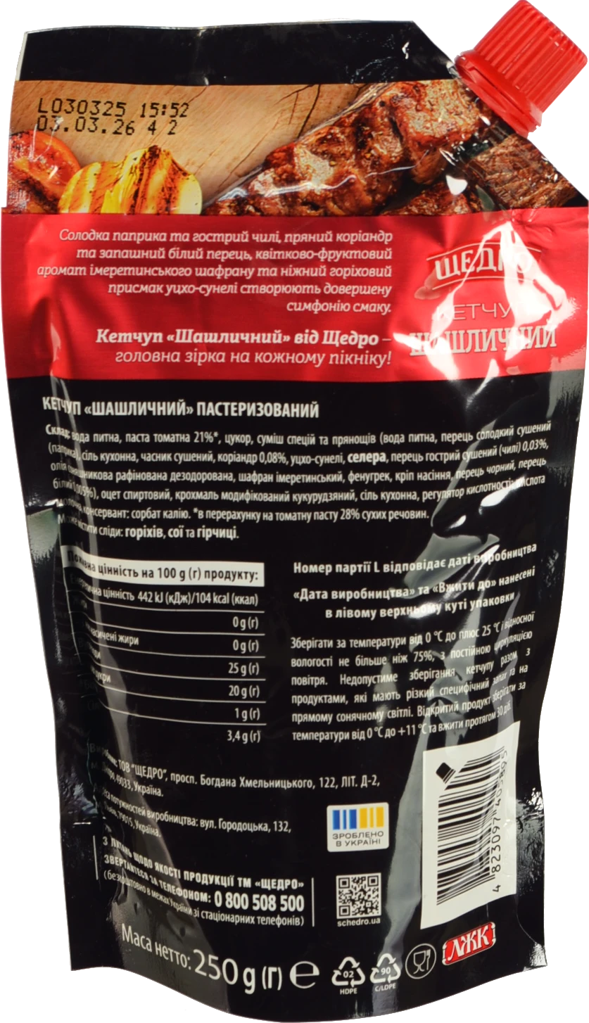 Кетчуп Щедро Шашличний 250г
