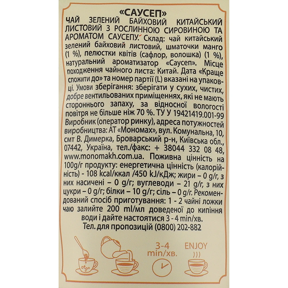- Композиція на основі зеленого чаю Саусеп Чайні шедеври д/п 60г