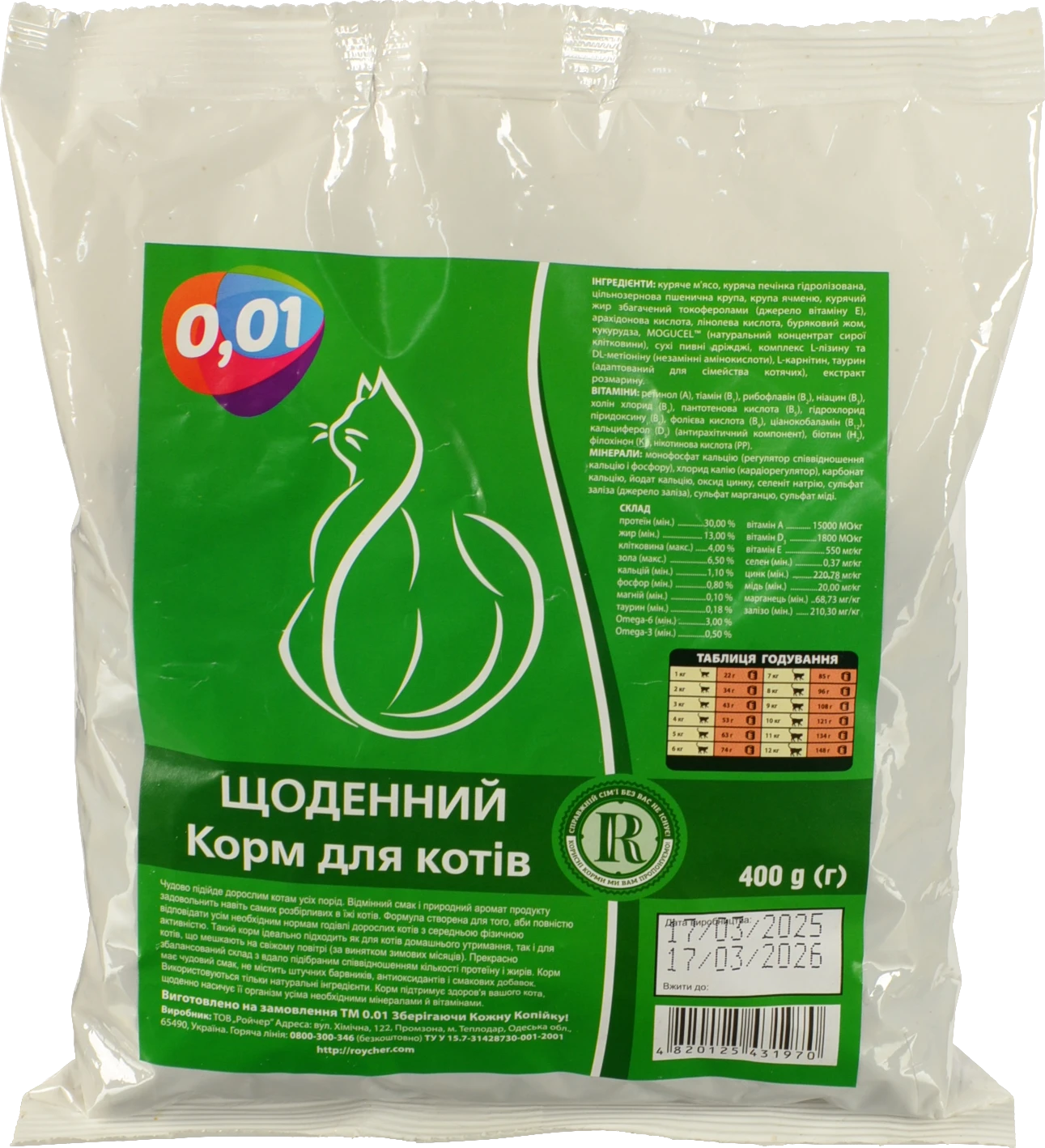 Вид продукції:КОРМ ДЛЯ КОТІВ