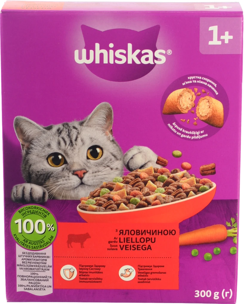 - Корм для дорослих котів з яловичиною Whiskas 300г